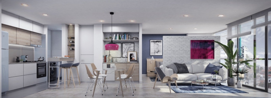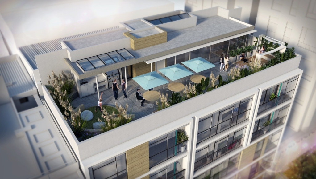 Como espacio comunal se entregó una terraza comunal dotada con BBQ, zona deck, espacio para yoga y picnic, chimeneas a gas, salón de reuniones y vegetación natural.